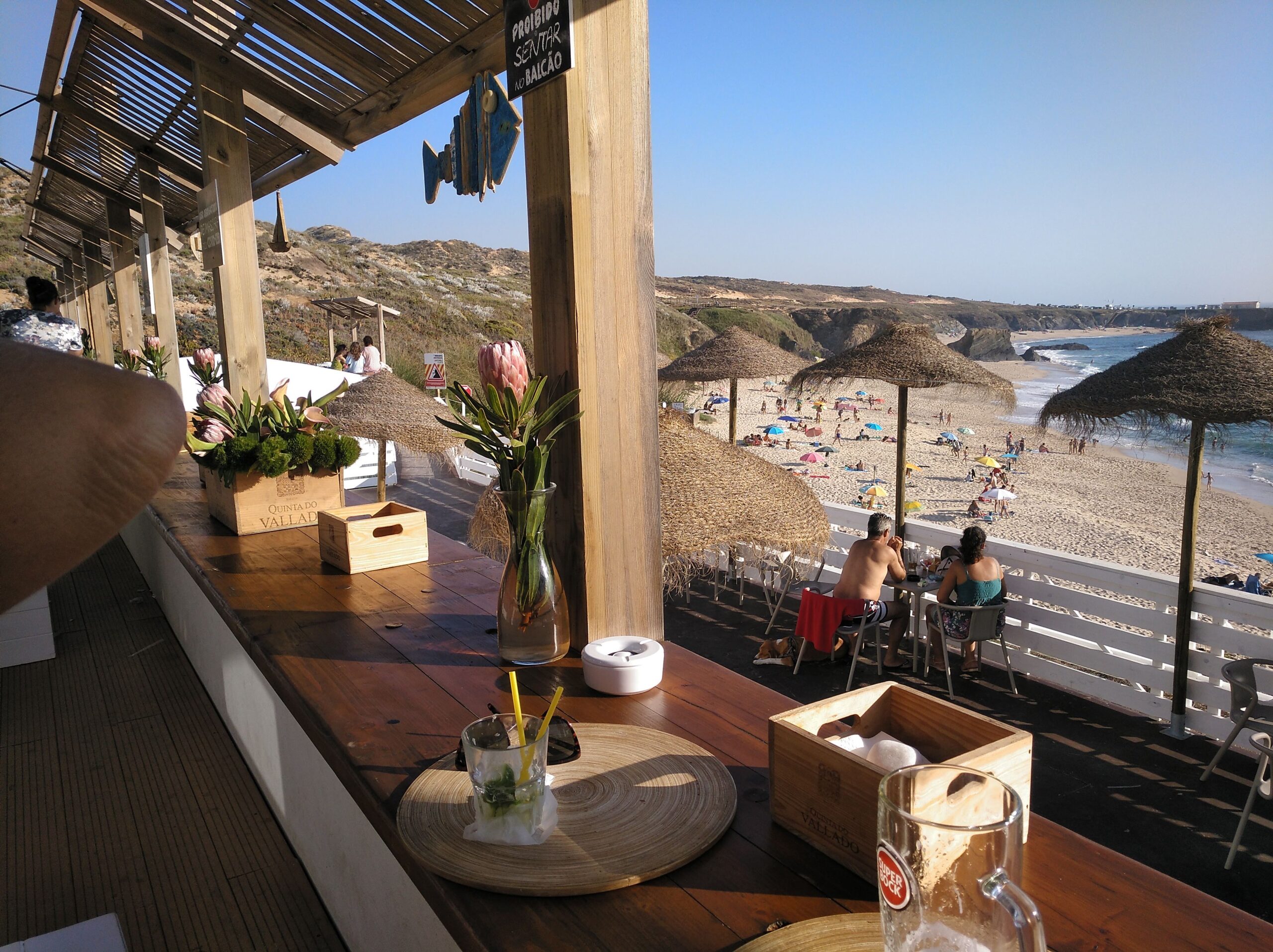 Er zijn op het moment van schrijven 2 strandtenten, één traditioneel portugees restaurant en de ander een hippere tent waar je cocktails kunt drinken en mooi en lekker vegetarisch kunt eten.